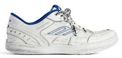 スケートシューズ特有のスポーティな佇まいをベースに、オールレザーで仕立てたモデル。アッパーには裁ち切りのディテールを取り入れ、あえて履き込まれたような風合いを演出するヴィンテージ加工を施している。単なる“古着風”ではなく、計算されたエイジング表現によって、BALENCIAGAならではの洗練を感じさせる仕上がりだ。